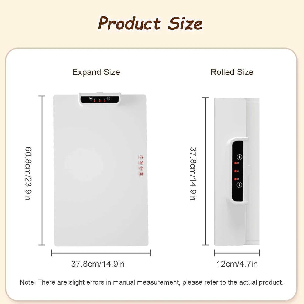 🌡️💡Our electric heating tray is incredibly portable. Its roll-up design makes it convenient for storage, saving valuable kitchen space🌡️💡